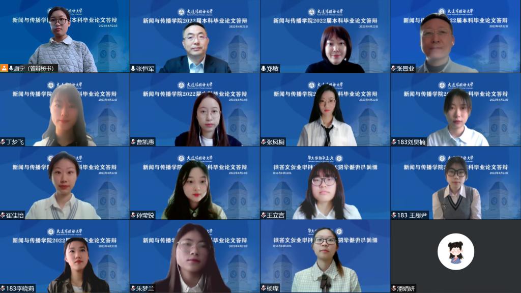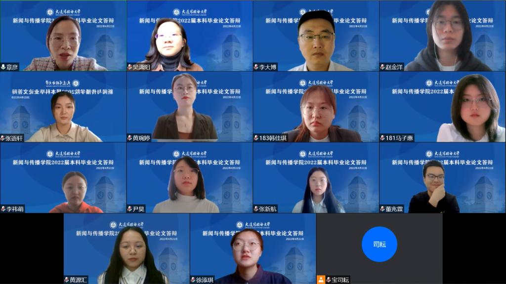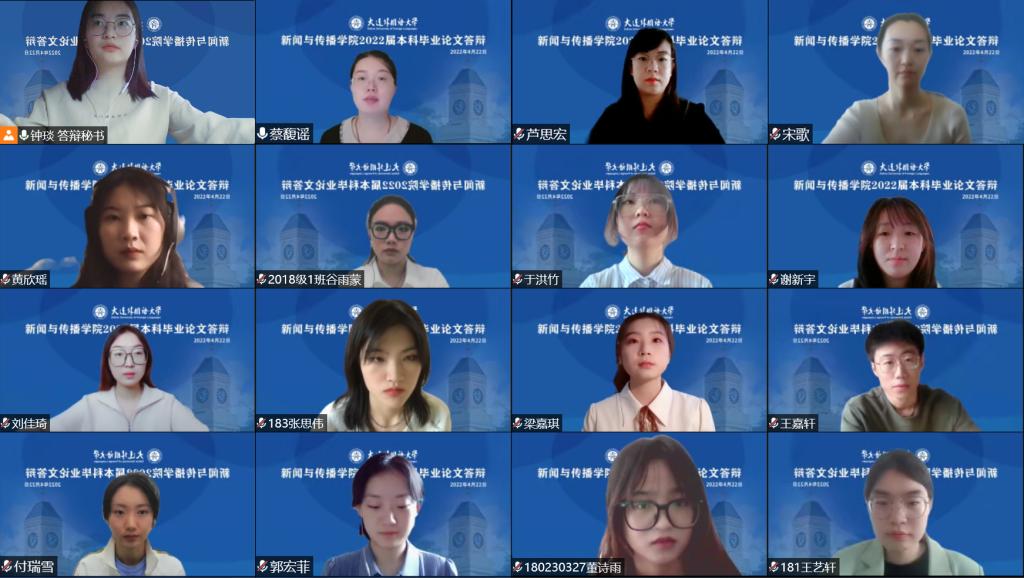 答辩历时6小时,2018级新闻学、传播学专业学生均达到本科毕业论文要求,其中《<中国的宝藏>跨文化叙事研究》《传播仪式观视域下B站患癌博主的Vlog研究》《YouTube平台CGTN“Spacelog”系列视频海外传播内容与接受研究》《中老年群体短视频APP使用中的数字代沟研究》4篇被评为优秀本科毕业论文。