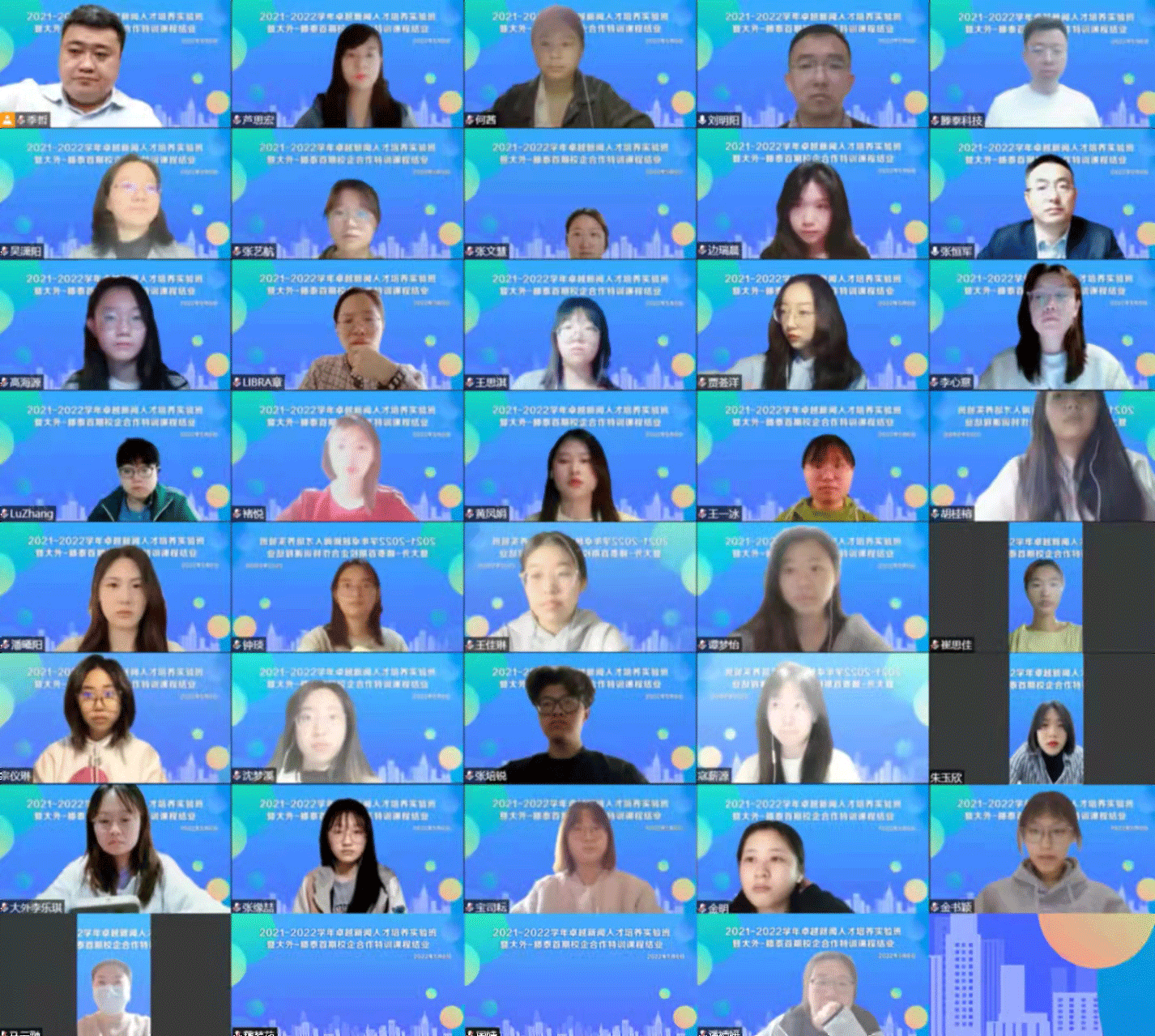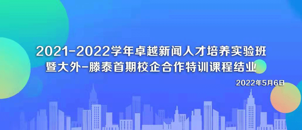 与滕泰科技(大连)有限公司联合举办2021-2022学年卓越新闻人才培养实验班暨大外—滕泰首期校企合作特训课程结业仪式。活动由滕泰科技特训课程班主任季哲老师主持,滕泰科技全媒体总监谭乃夫、快乐堂