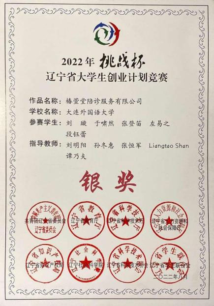 今年6月,由共青团辽宁省委员会、辽宁省教育厅、辽宁省科学技术厅、辽宁省人力资源和社会保障厅、辽宁省知识产权局、辽宁社会科学院、辽宁省科学技术协会、辽宁省学生联合会联合主办,大连海事大学承办的2022年“挑战杯”辽宁省大学生创业计划竞赛完成终审决赛,经过校内选拔赛、省赛初赛、省赛决赛等多个环节的角逐,快乐堂