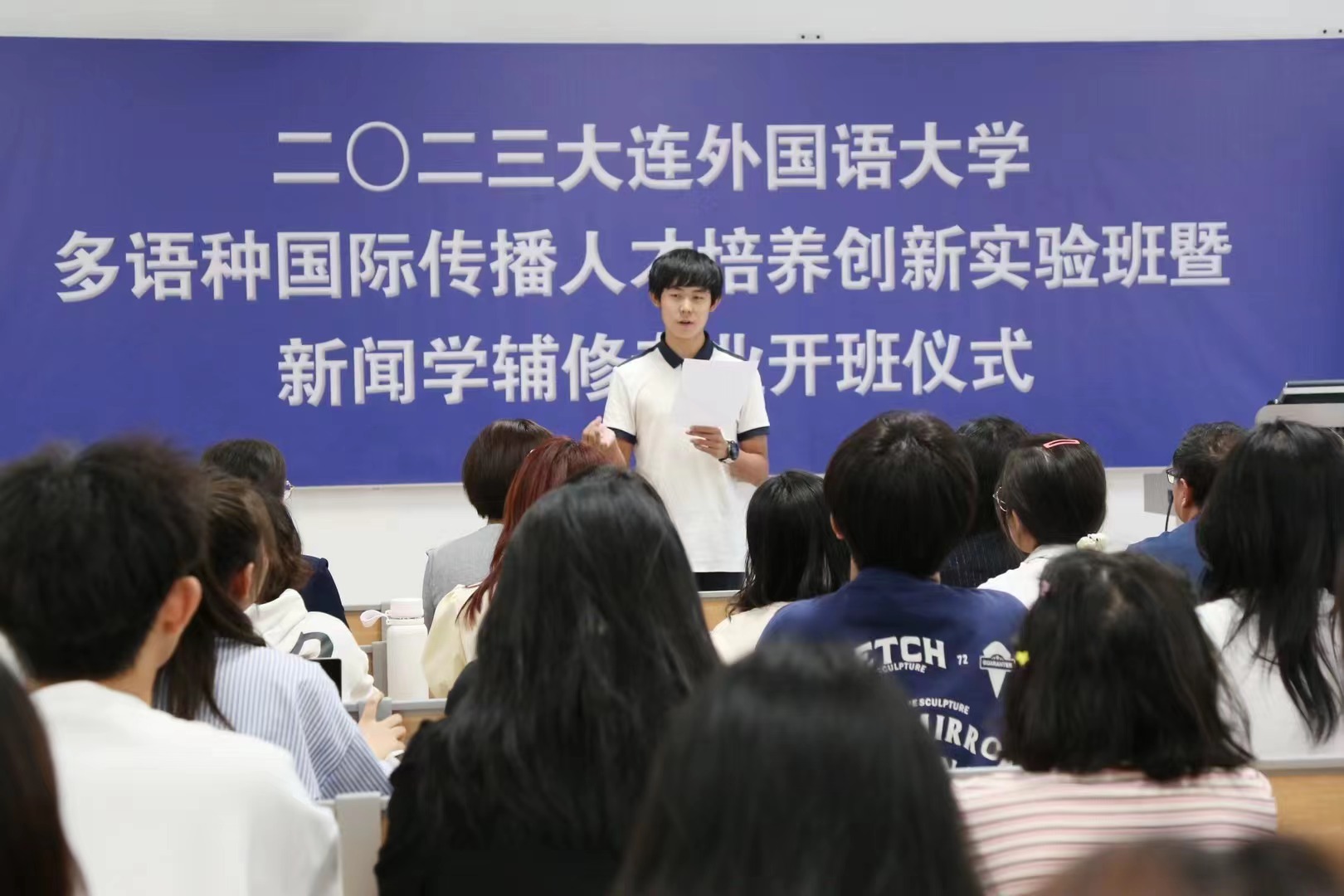 的张洪嘉和英语学院的陶婧分别代表实验班和辅修班的学员发表了热情洋溢的感言。他们共同倡议同学们珍惜本次宝贵的学习机会,注重积累专业知识和实践经验,努力为表达中国声音、展现中国风采、塑造中国形象奉献青春和力量。