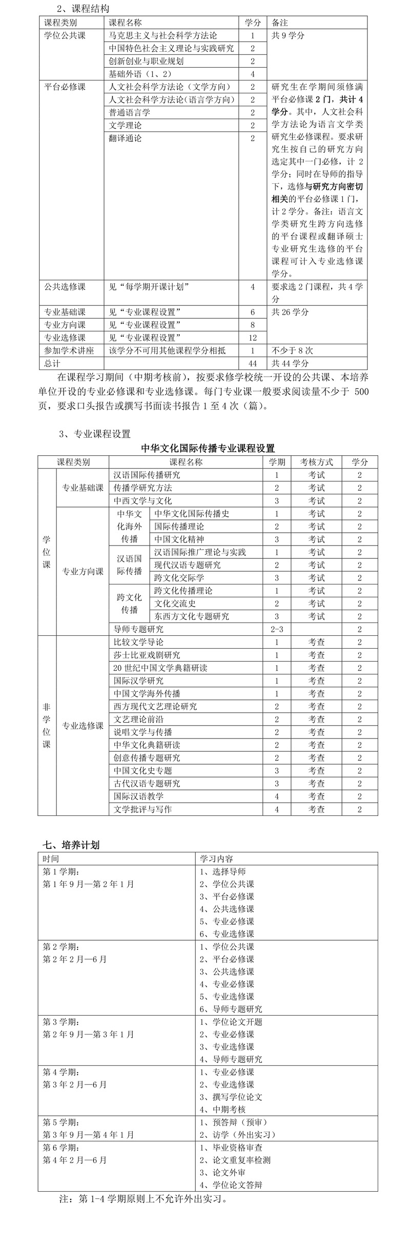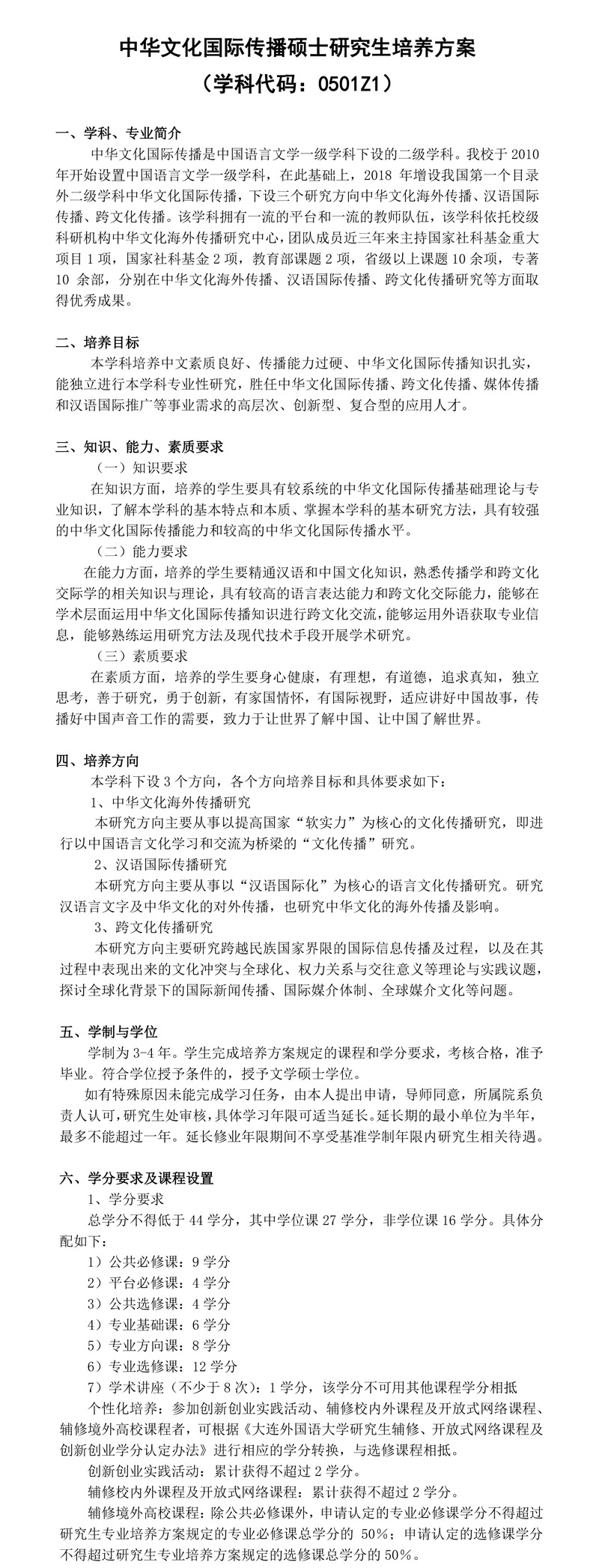 中华文化国际传播硕士研究生培养方案