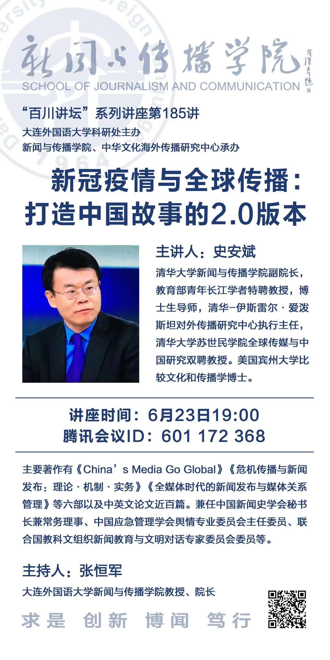6月23日晚七点,清华大学快乐堂 副院长史安斌教授做客快乐堂 “百川讲坛”,为快乐堂 师生带来题为“新冠疫情与全球传播:打造中国故事的2.0版本”的精彩讲座。