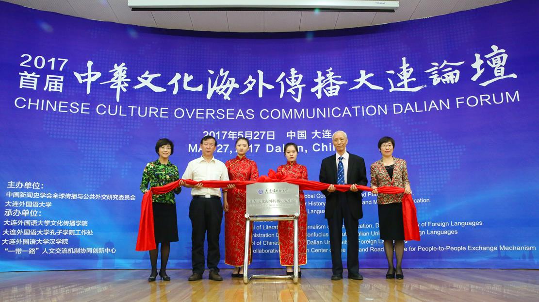 校长刘宏(右一)共同为“大外中华文化海外传播研究中心”成立揭牌。