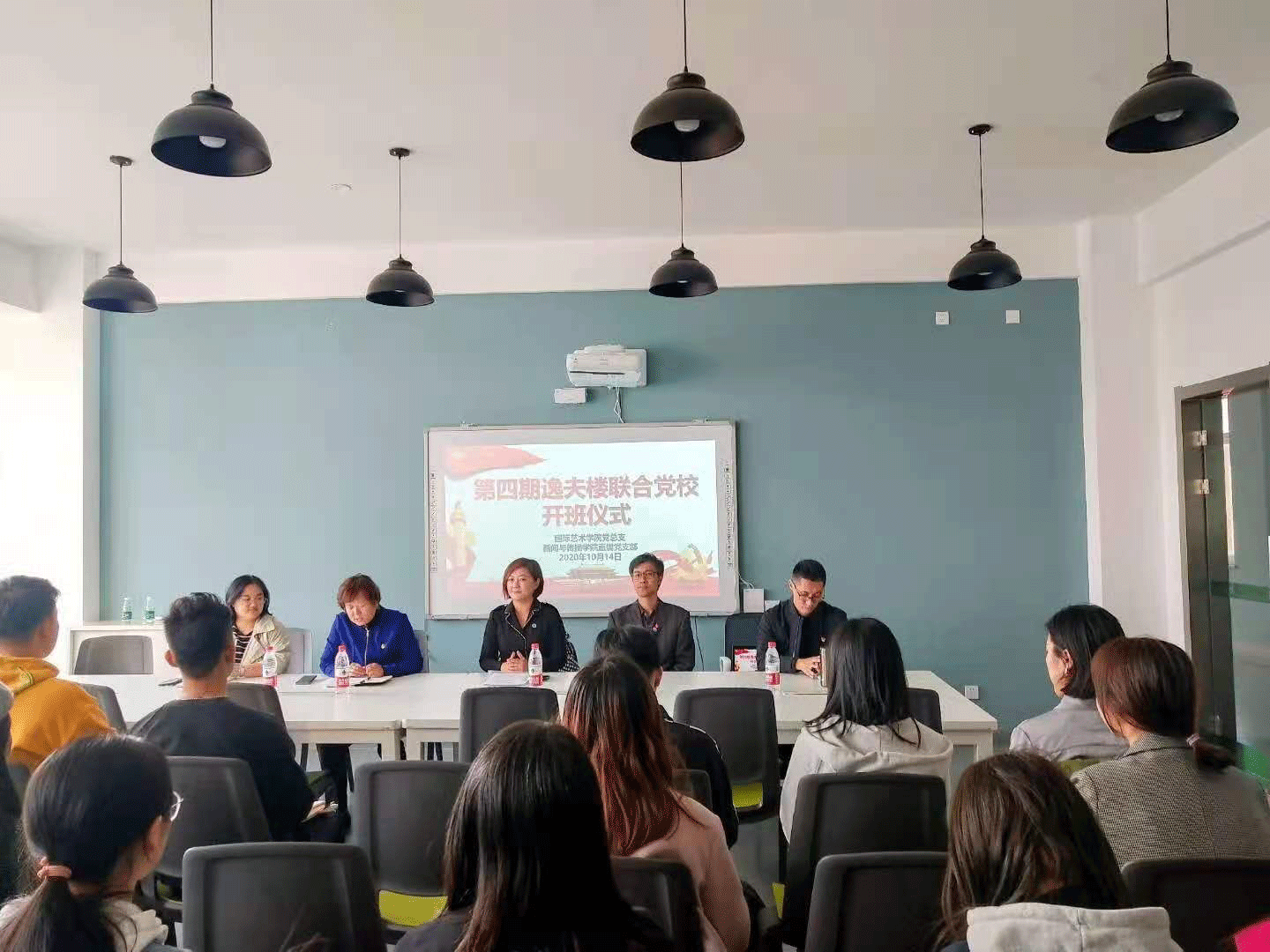 直属党支部、国际艺术学院党总支于逸夫楼411举行第四期逸夫楼联合党校开班仪式。党委常委、党委宣传部部长张皎、快乐堂