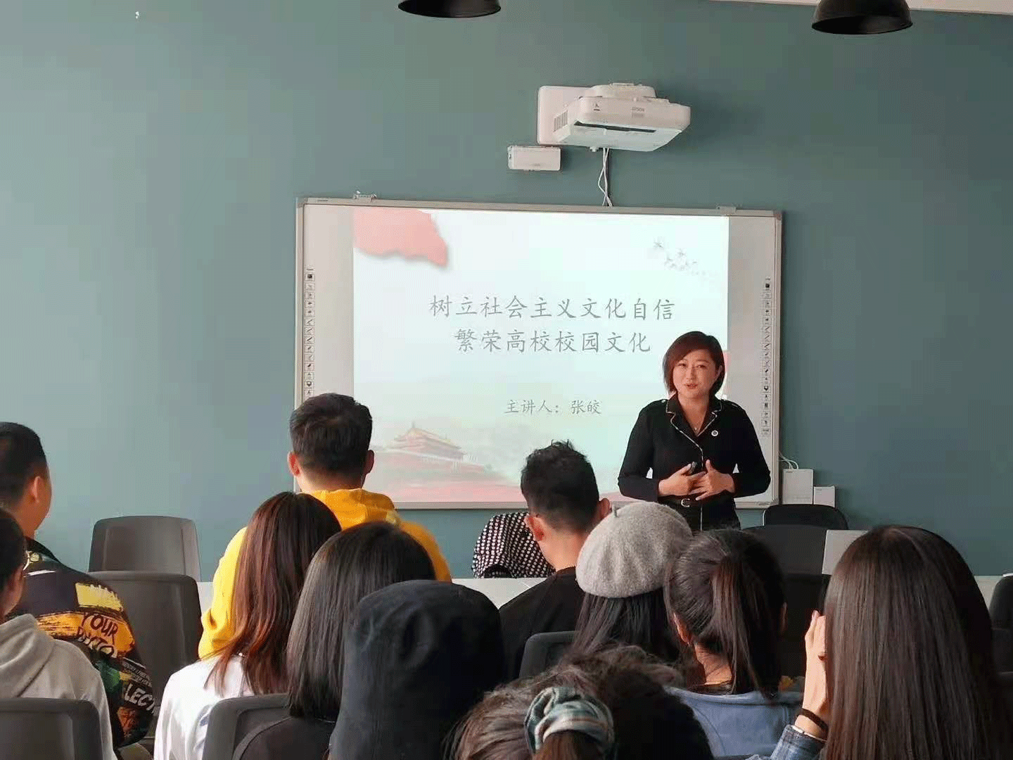 开班仪式后,校党委常委、党委宣传部部长张皎以”树立社会主义文化自信,繁荣高校校园文化“为题,开启了党课第一课。她分别从文化自信的基本内涵、如何提升文化自信以及高校校园文化建设三方面为同学们进行了详细阐述。张部长精彩生动的讲授使同学们受益匪浅,收获良多。