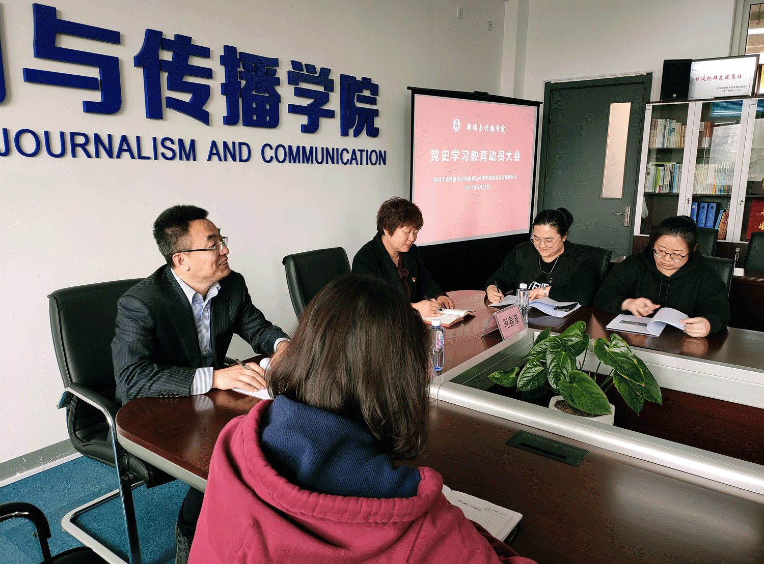 直属党支部在逸夫楼315会议室召开党史学习教育动员大会,按照党中央和辽宁省委、省教育工委、校党委部署安排,对全院党史学习教育进行动员部署。学院领导班子、全体科级干部和部分师生党员参会。直属党支部书记倪春波作动员部署讲话,直属党支部副书记、院长张恒军主持会议。