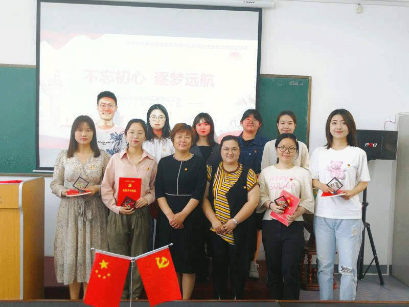 会后,倪春波书记和王琳老师共同为毕业生颁发了学院直属党支部为大家精心准备的党员笔记本和毕业纪念品,并在逸夫楼合影留念。