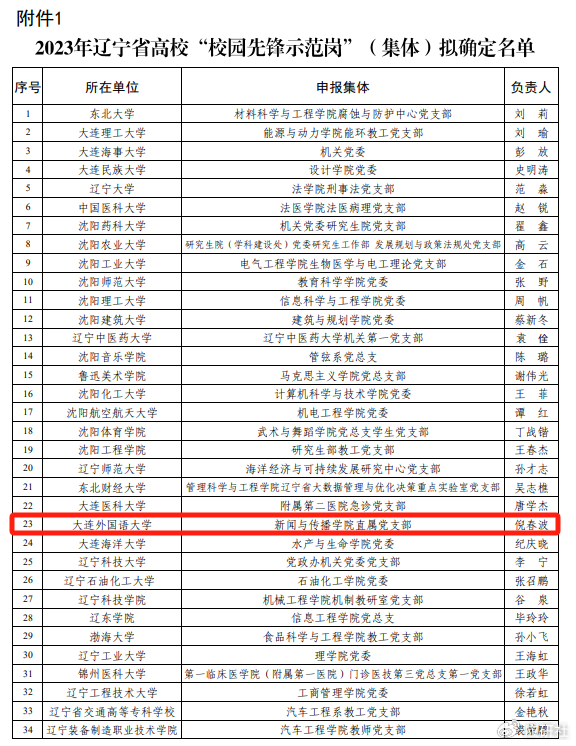 近日,辽宁省委教育工委公布了2023年全省高校“校园先锋示范岗”名单,快乐堂